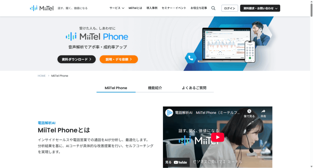 通話内容を自動で分析し、営業トークや対応品質の可視化が可能。