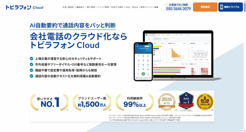 日本の電話文化や業務慣習に合わせて設計されており、操作性が高く、サポート対応も丁寧なのが特徴です。